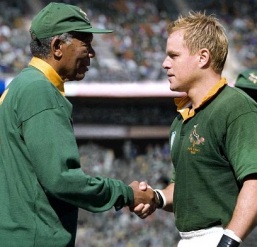 In the movie Invictus, Morgan Freeman portrays former South African President and Nobel Peace Prize Winner Nelson Mandela. As the nation’s first anti-apartheid president he faced an unprecedented challenge; directing the country into a future that would learn from, but not mirror its past. For many, the change in leadership signaled a turning of the tides; a reversal of fortune. People whose voices had been silenced by oppression and fear were now being heard loud and clear, making the message all the more important. But what Mandela understood above all was that this new voice had to be one of peace, understanding and forgiveness. This was evident in many decisions he made in the film, but most clearly established in one conversation.